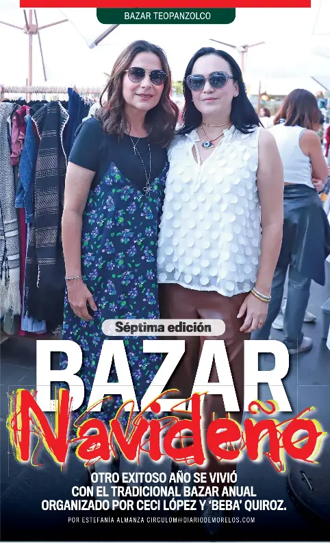 Más de 60 expositores formaron parte de la séptima edición del tradicional Bazar Teopanzolco edición Navidad. Al igual que cada año Ceci López y Beba Quiroz fueron las anfitrionas encargadas de alistar hasta el último detalle para recibir a los expositores que dieron a conocer artículos como joyería, miel natural, prendas de ropa, artículos de baño, accesorios de decoración para navidad, entre otros.